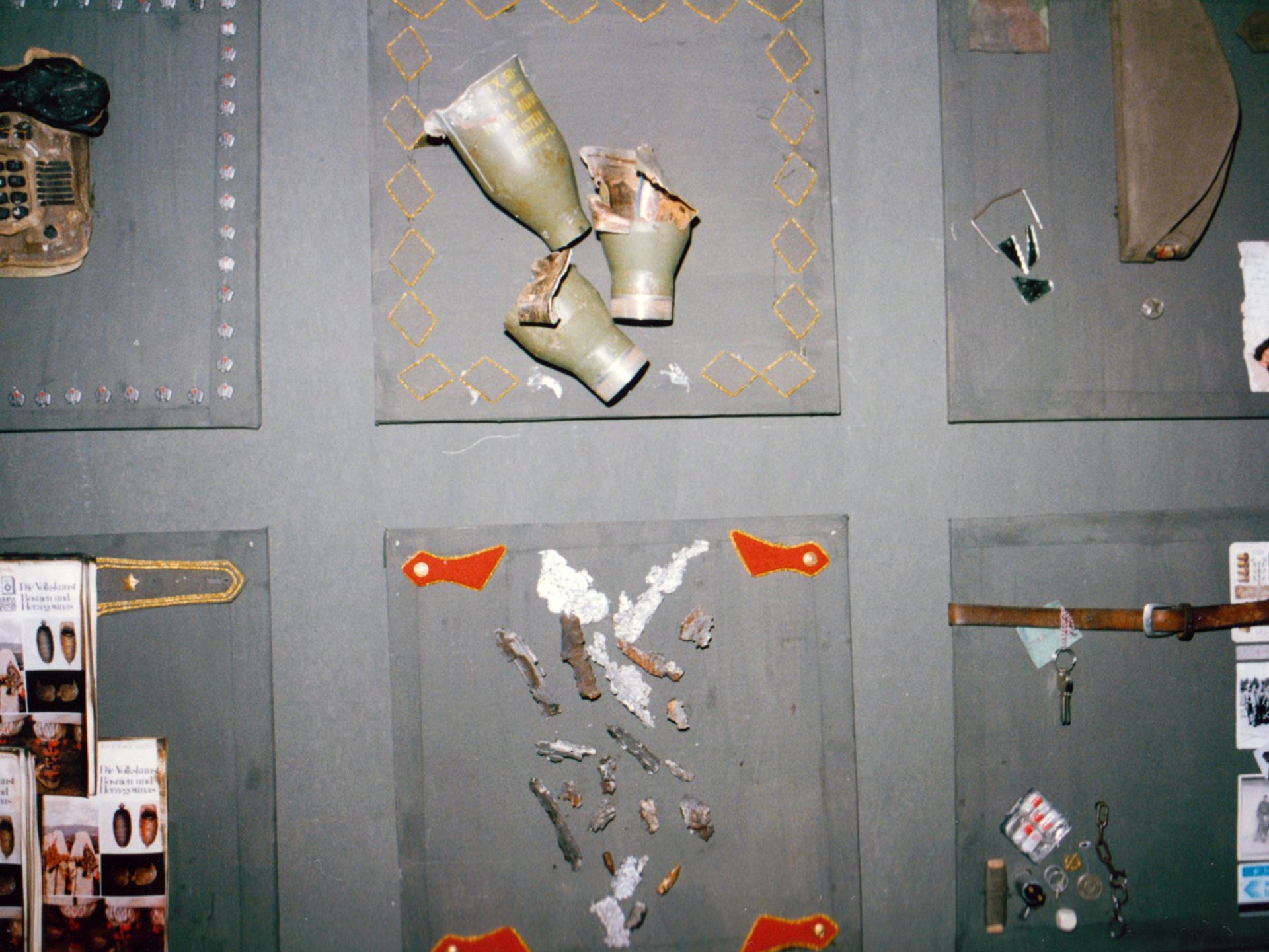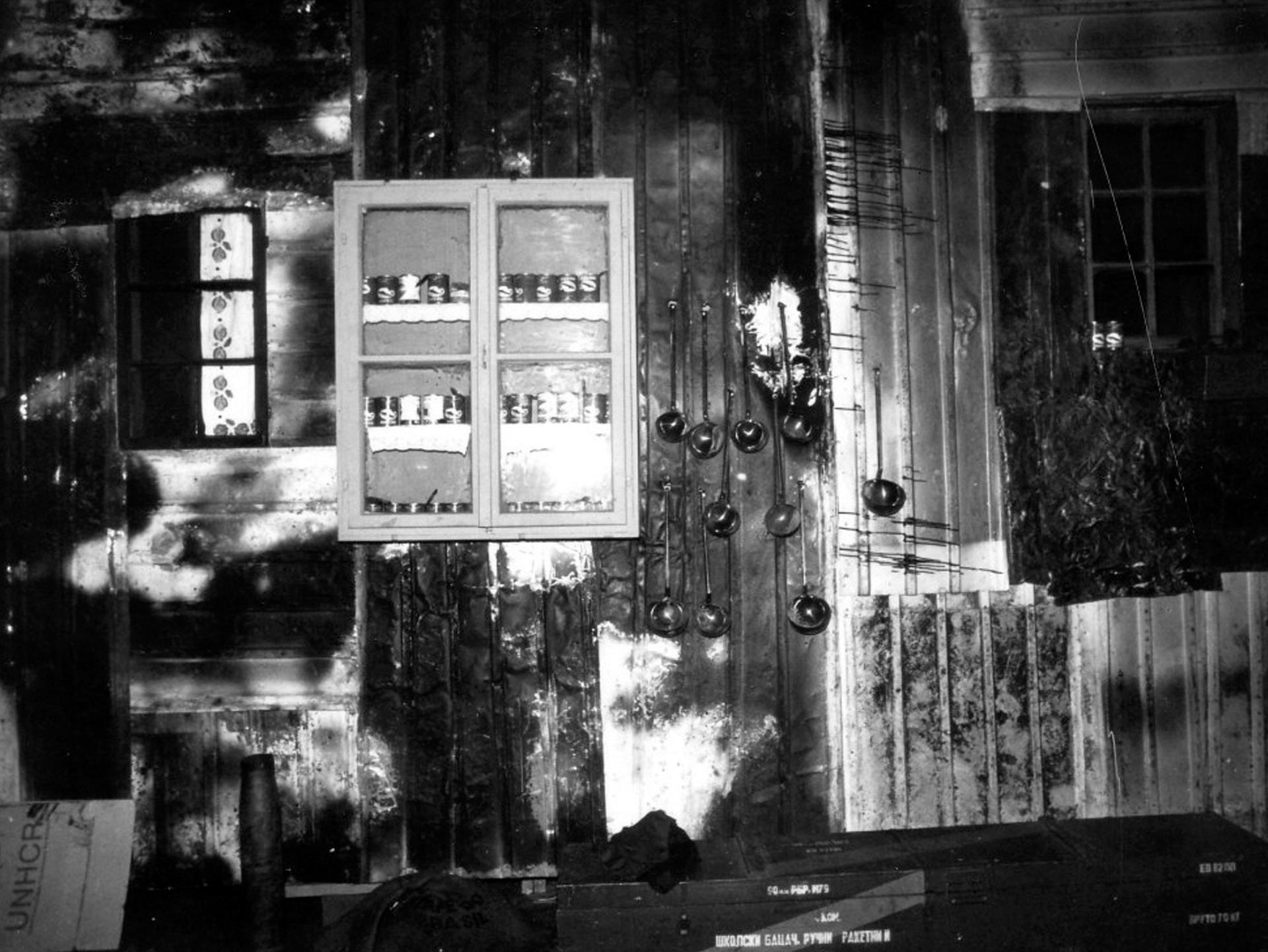 Kada su jedan dan pored nagorjelih limova donijeli i desetak velikih teških zelenih vojnih sanduka, bila sam presretna. Poslužili su da sagradim dio zida kuće koji je bio zanimljiv zbog tipografije otisnute na površini sanduka masnom crnom bojom, brojevi i slova, nekakve mistične skraćenice - šifre kojima je JNA označavala tipove oružja i kalibre municije pohranjene u sanducima. Tako je jedan zid naše bosanske kuće bio „išaran JNA grafitima“!