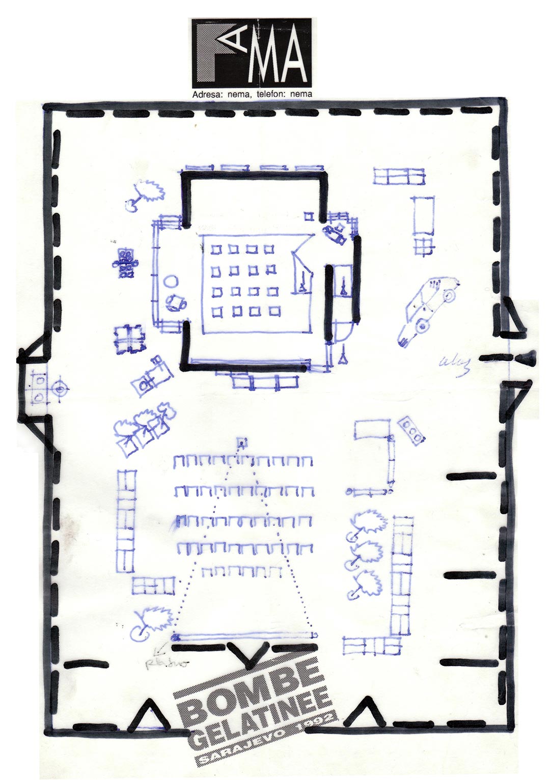 Projekat „Bomba od želea“ - "Bosanska kuća, 1992.", tlocrt, arhitektica: Ognjenka Finci
