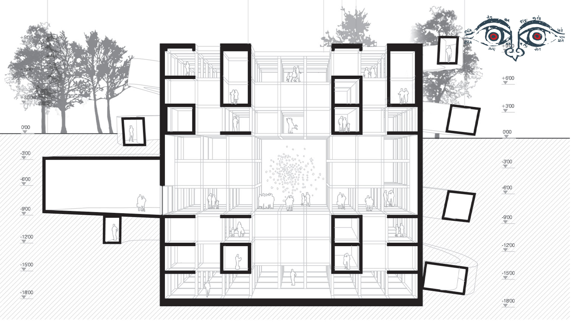 "U projektovanju muzeja namjerno koristimo radikalno različite prostorne razmjere – od urbanih i javnih do privatnih i intimnih proporcija. Ova prostorna raznolikost nije estetska odluka već neposredna reprezentacija "beskonačnosti ljudskog uma u svim njegovim racionalnim i iracionalnim moćima".[1]