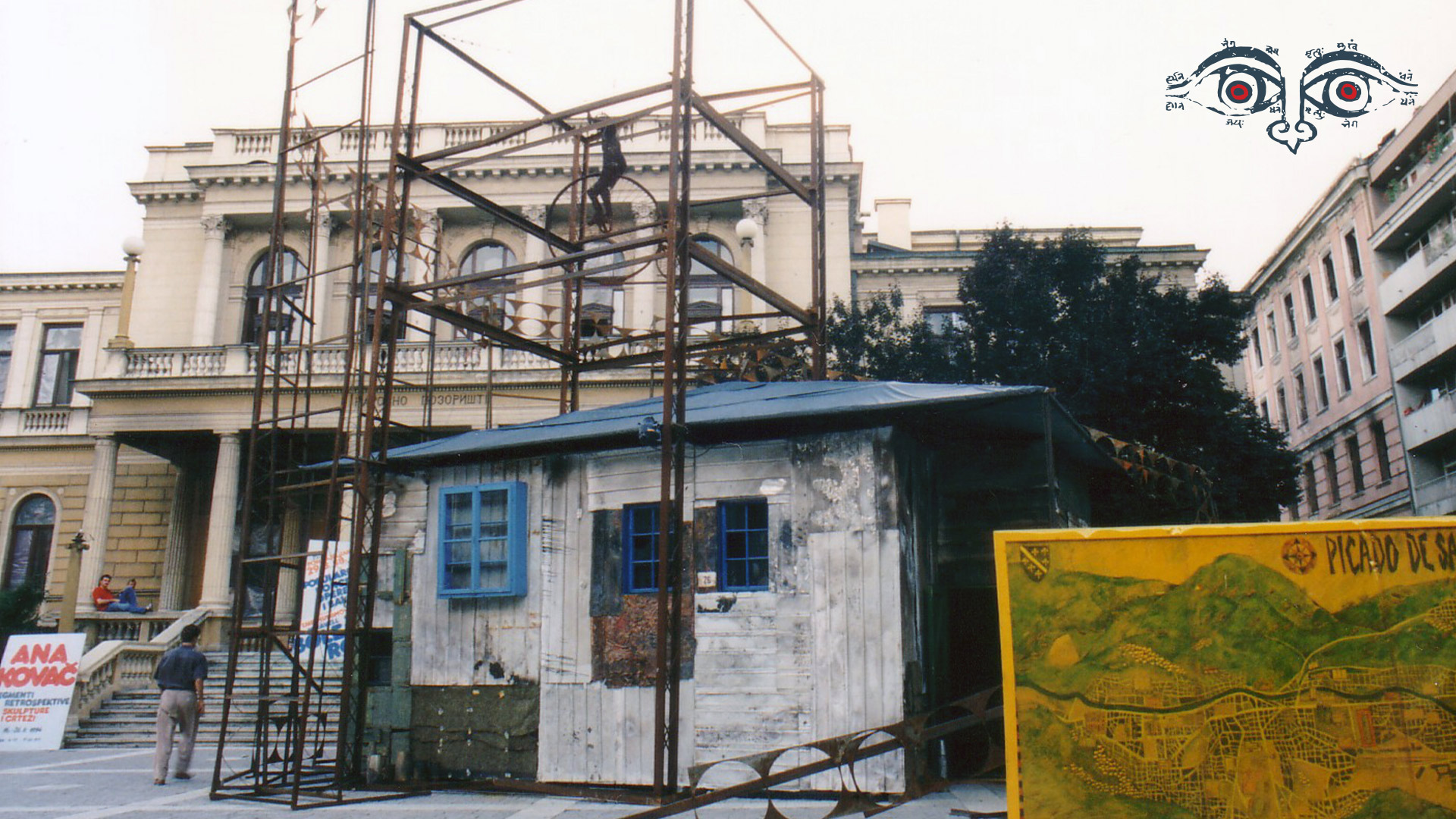 Građani Sarajeva su bili zatvoreni, a ulice grada su samo pretrčavali i sklanjali se iza kontejnera. U ljeto 1994., tokom nestabilnog primirja, FAMA je osvojila dio otvorenog prostora ispred Narodnog pozorišta i postavila dijelove Bosanske kuće 92. i u enterijeru smo izložili pozorišne kostime, plakate, nakit i skulpture nastale tokom opsade, sada već kao dio masovnijeg kulturnog otpora teroru. Građani su dolazili, razgledali i komentarisali, izgledalo je kao da je to bio mali izlet u normalnost.