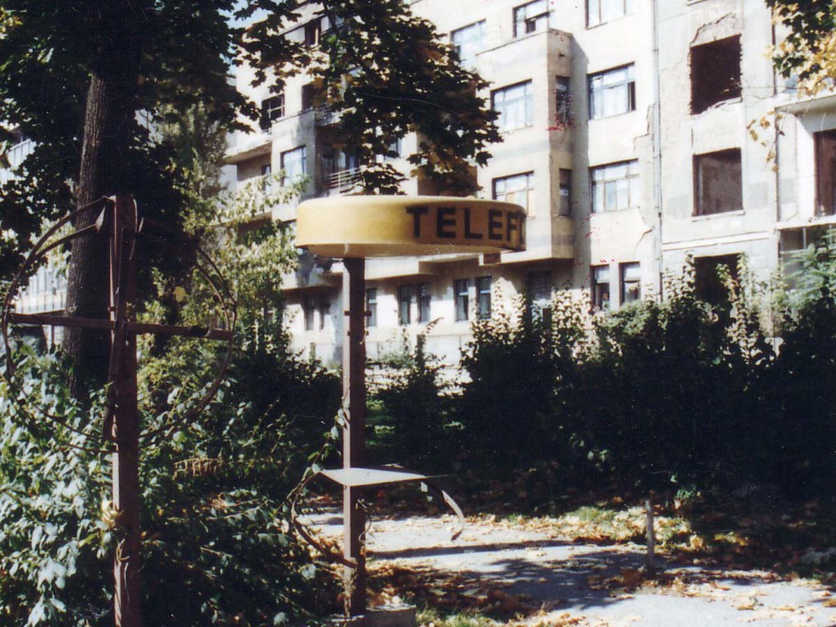 Uništena telefonska govornica, Sarajevo 1992-1996. © FAMA Kolekcija - Arhiv fotografija 1992-1996. (Drago Resner)