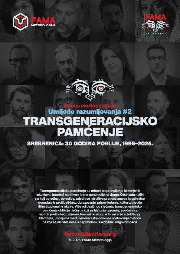 Dok obilježavamo trideset godina od genocida u Srebrenici, suočavamo se sa tri generacije, od kojih je svaka oblikovana posebnim odnosom prema ovoj historiji. Prva generacija su oni koji su proživjeli rat i još uvijek se suočavaju s naslijeđem neostvarane pravde i osporavane istine. Druga generacija su oni rođeni krajem rata 1995. godine, koji sada pune trideset godina, a odrasli su u društvu koje je često negiralo ili iskrivljavalo činjenice o ratu i njegovim posljedicama. Mnogi od njih su odrasli bez pristupa pouzdanim informacijama o raspadu Jugoslavije ili su učeni na različitim narativima koji umanjuju, negiraju ili relativiziraju ratne zločine i genocid u Srebrenici. Dolazak treće generacije, onih koji će se roditi 2025. godine, nudi izazov i priliku. Ono što će ova generacija saznati za trideset godina, i kako će to znanje steći, zavisiće od o tome kako definišemo, strukturiramo i postavljamo prioritete transgeneracijskog pamćenja.